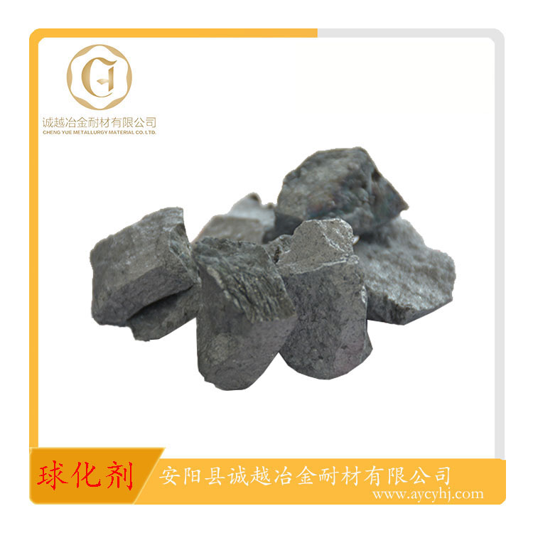 球化劑是使鑄鐵中的石墨呈球狀析出的鐵水添加劑。應(yīng)用于鑄鐵鑄造領(lǐng)域。含鎂量4%、5%、5.5%屬于低鎂球化劑,RE在1%-2%之間,多用于中頻爐熔煉、低硫鐵液的球化處理。它具有球化反應(yīng)和緩、球化元素易于充分吸收的優(yōu)點(diǎn)。 含鎂量6%、7%屬中鎂系列球化劑,多用于沖天爐、電爐雙聯(lián)熔煉,或中頻爐熔煉珠光體型鑄態(tài)球墨鑄鐵鑄件。根據(jù)鑄件壁厚和原鐵水含硫量,確定合適的球化劑加入量,適用范圍廣,球化處理工藝寬泛。 高鎂系列球化劑,適合沖天爐熔煉、含硫量0.06%-0.09%的鐵液,加入量在1.6%-2.0%之間。 低鋁球化劑使用于容易產(chǎn)生皮下氣孔缺陷的鑄件,以及對(duì)鐵液含鋁量有要求的鑄件。 純Ce、純La生產(chǎn)的球化劑,球化處理后鐵液純凈夾雜物少、石墨球圓整。釔基重稀土生產(chǎn)的球化劑適合于大斷面鑄件,延緩球化衰退、防止塊狀石墨。含Sb球化劑用于珠光體型球墨鑄鐵。 低硅球化劑適用于使用大量回爐料的鑄造工廠;鎳鎂球化劑則用于高鎳奧氏體球墨鑄鐵。